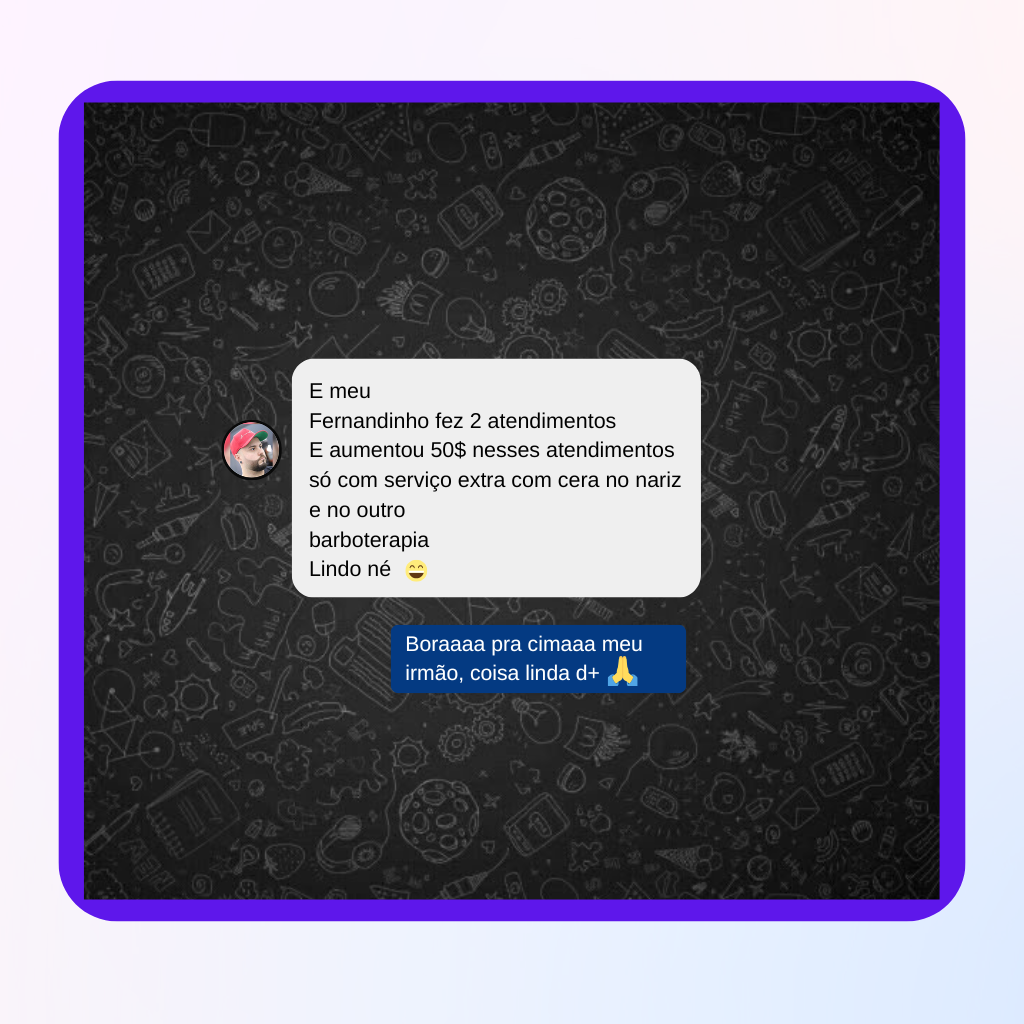 Meu nome é Tiago Lopes, tenho 39 anos e sou barbeiro a 09 anos, ao longo desses anos como barbeiro fui crescendo e estudando muito sobre o mercado, logo percebi que a barbearia poderia ir muito além de só cortar cabelo e fazer barba, pois o público masculino se tornava mais exigente e cuidadoso com sua própria imagem. Foi ai que eu, em meio a uma dificuldade financeira para pagar um curso decidi vender alguns serviços fora o tradicional de uma barbearia, foi quando me surpreendi e logo vi uma mega oportunidade de expandir meu ganhos com os clientes que eu já tinha.Hoje a Essence Barbershop fatura mais de 35 mil reais e nosso Ticket Médio é excelente!